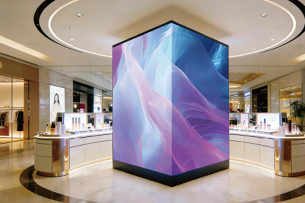 可选配切边箱体,支持45°斜角拼接,轻松实现包柱、绕梁等异形安装,贴合商场、展厅等空间的创意造型需求;