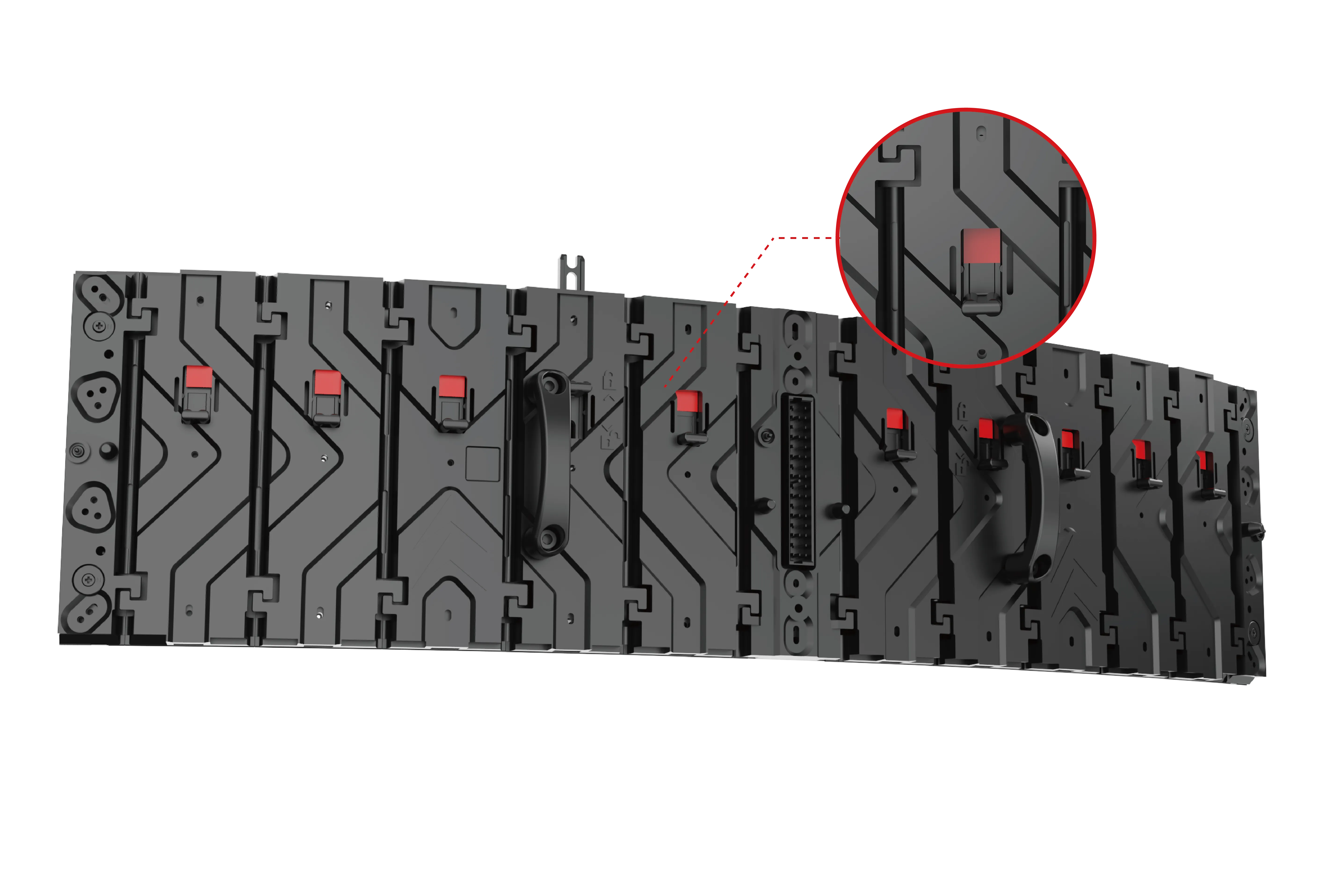 采用上下双重定位卡销,模组上下精密卡销结构精准咬合,确保模组无前后错位现象,即使在多角度舞台灯光下,每一帧画面稳定流畅运行。